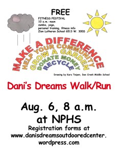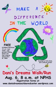 This year’s theme for the Dani’s Dreams Walk/Run is “Make A Difference.” Registration brochures for the event will be available online at http://www.danisdreamsoutdooredcenter.wordpress.com and at area businesses and Zion Lutheran School.