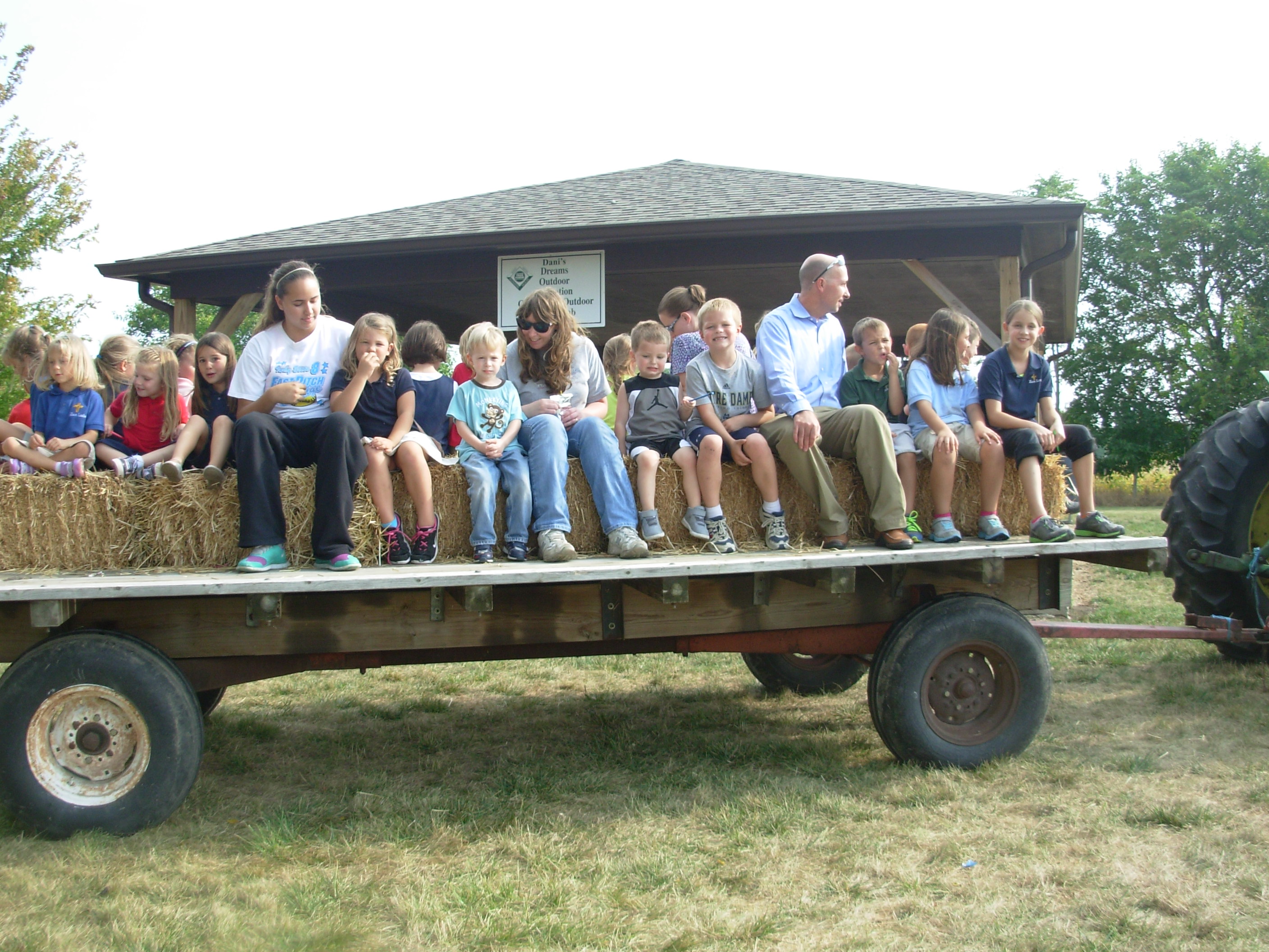 Southern Hancock students jumped on the haywagon when Dani’s Dreams honored the contributions of farmers Sept. 19. Nearly 40 children of all ages descended on Dani’s Dreams Outdoor Education Center to “Celebrate Our Farmers.” Local farmer Brian Kleiman talked about the technology and science of farming and answered questions from the students. The competition began soon after and teams took off on a Nature Scavenger Hunt, returning with fuzzy wooly worms, sticks, leaves and lots of beautiful things. After a bountiful harvest of farmer’s market snacks, the afternoon event ended with a haywagon ride generously provided by local farmer Doug Schildmier.