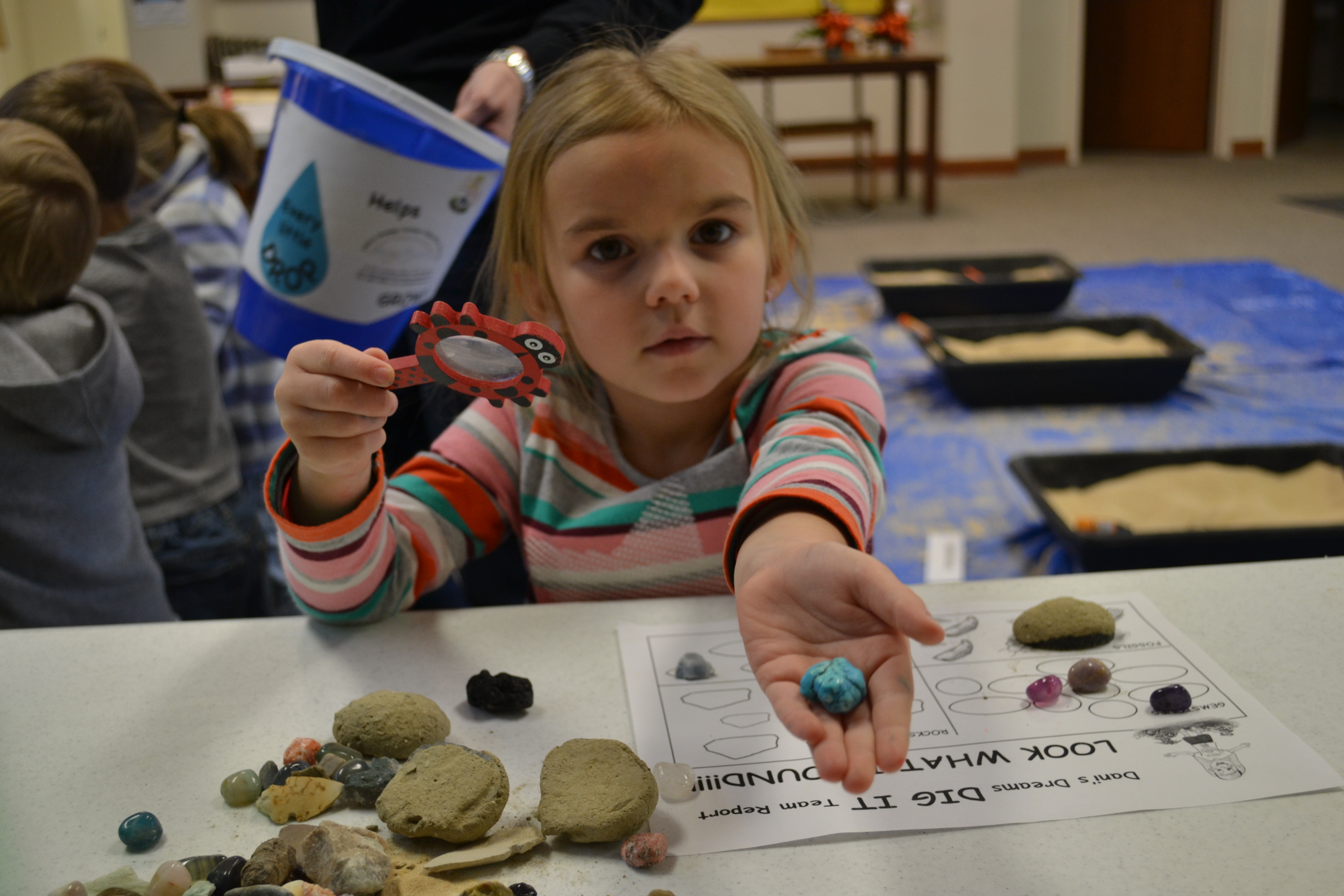 Preschool through grade four students learned how to recycle and saw the products made from recycled materials. Students in grades 5-8 became water drops and traveled through the phases of the water cycle, picking up beads for their water cycle bracelets