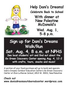Because of the great response to ECOFEST Lessons and the festival, Dani’s Dreams is extending the deadline for the Southern Hancock T-shirt Wars to sign up for membership and help your favorite elementary school win a $300 grant! Sign up by May 6 online here to become a Dani’s Dreams Team member and get your favorite kid a free T-shirt, wristband, certificate and exciting and fun activities and information they can use all year to “Change the World!”